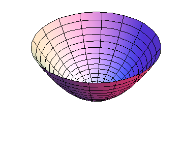 Consider first the simpler case when \(B=0\text{.}\) Then \(h\) is parabolic along both the \(x\) and \(y\) axes; the only question is whether the parabolas open up or down. If \(AC>0\text{,}\) both parabolas open in the same direction, and the graph is a paraboloid, as shown in Figures 10.2.2 and Figure 10.2.1, whereas if \(AC\lt 0\text{,}\) the graph is saddle-shaped, as shown in Figure 10.2.3.